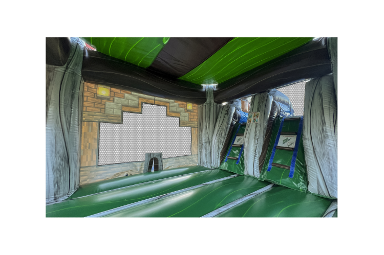 With two sliding lanes available, users can race each other side-by-side in both wet and dry conditions. The inflatable features a large bouncer area, basketball hoop, and double lane slide which can be used wet or dry.